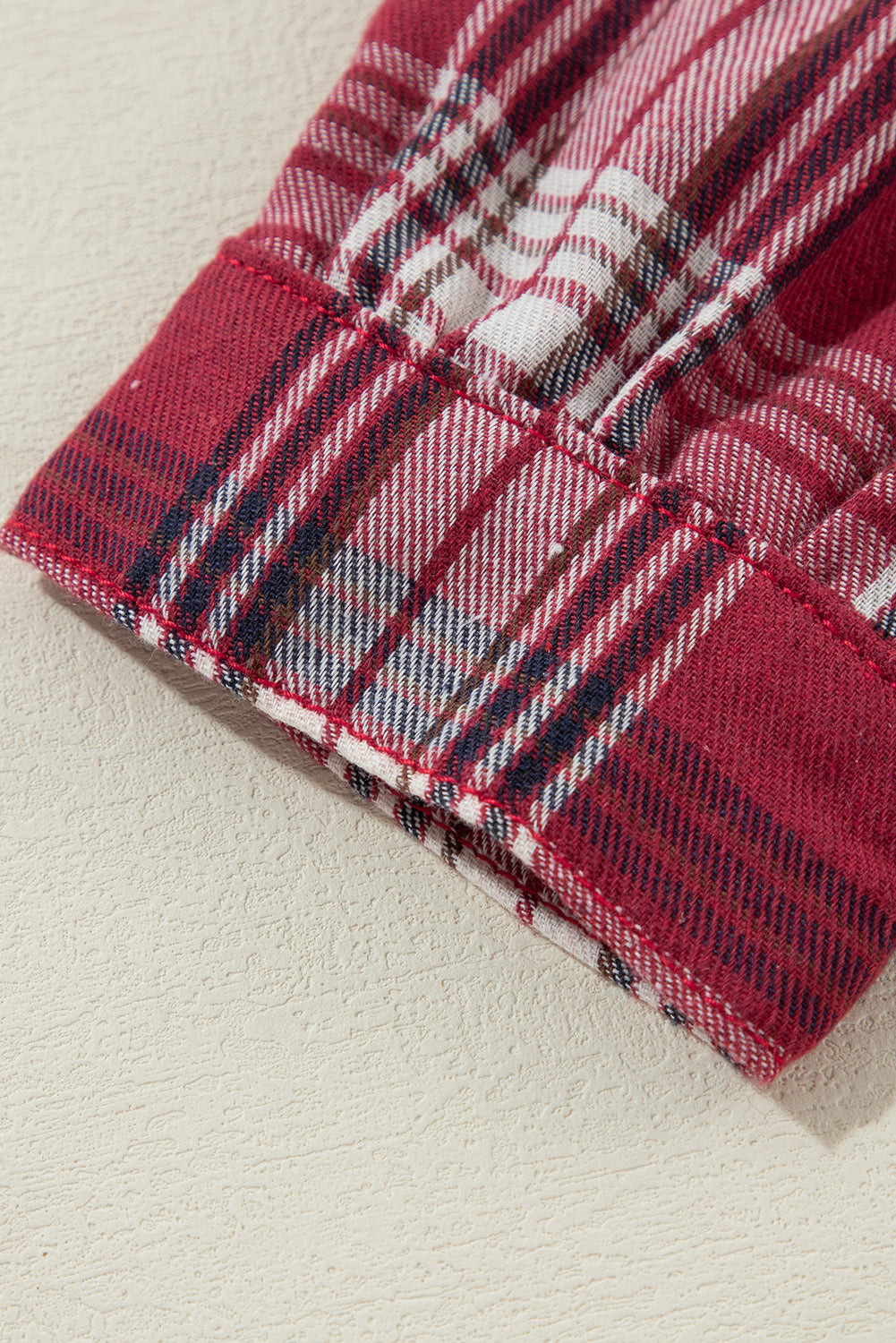 Beau Blue Plaid Print Patchwork Hooded Raw Hem Denim Jacket