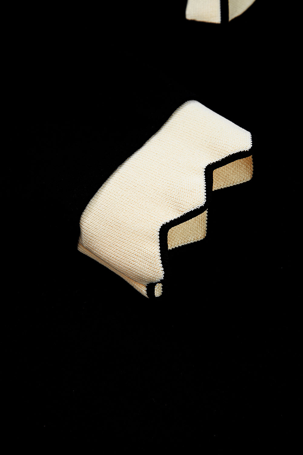 Black Scallop Trim Colorblock Long Sleeve Collared Top