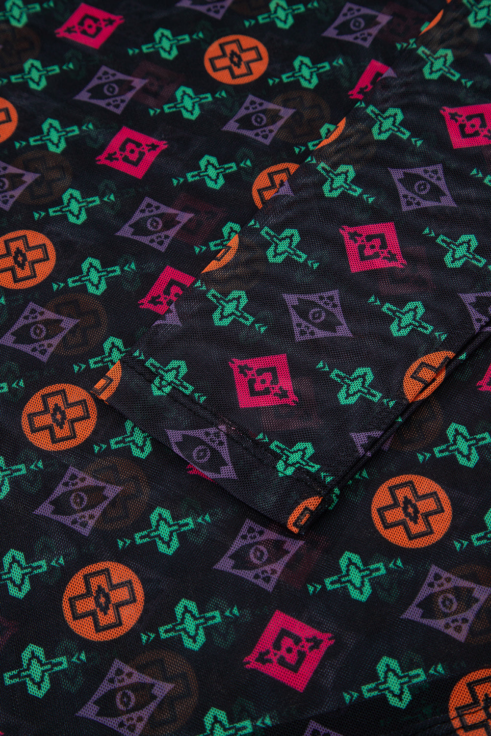 Black Western Aztec Printed Long Sleeve Mesh Top