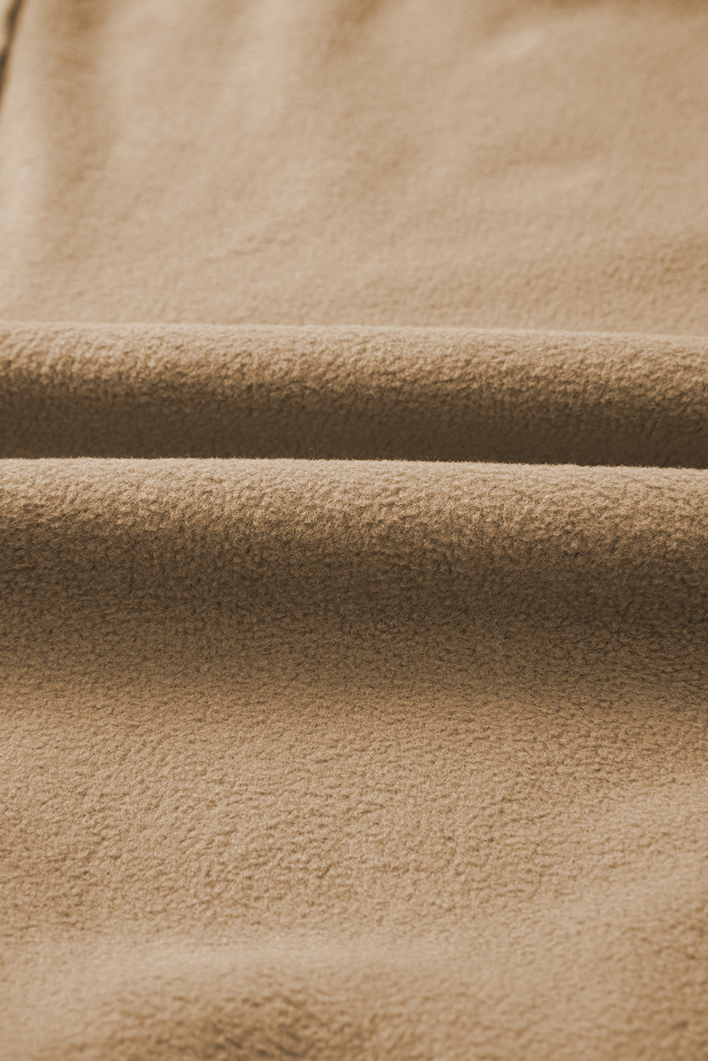 Dark Khaki Fuzzy Sherpa Splicing Pullover Sweatshirt