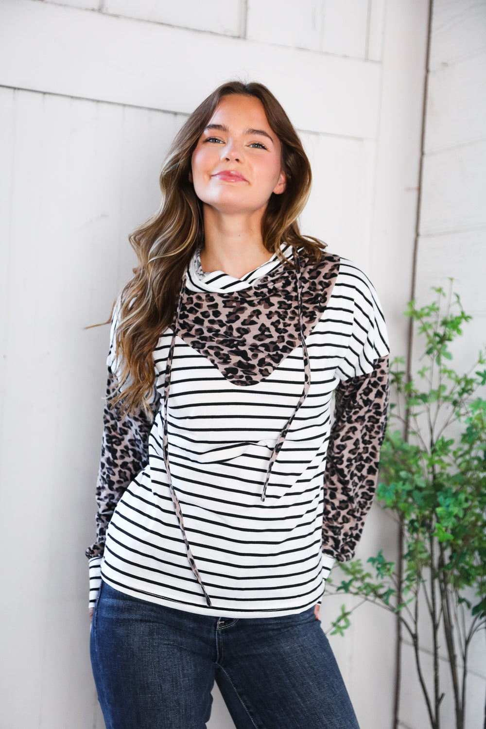 This hoodie perfectly combines our favorite animal and stripe prints. It is soft, stretchy and light weight. A great piece for running errands or casual nights out.