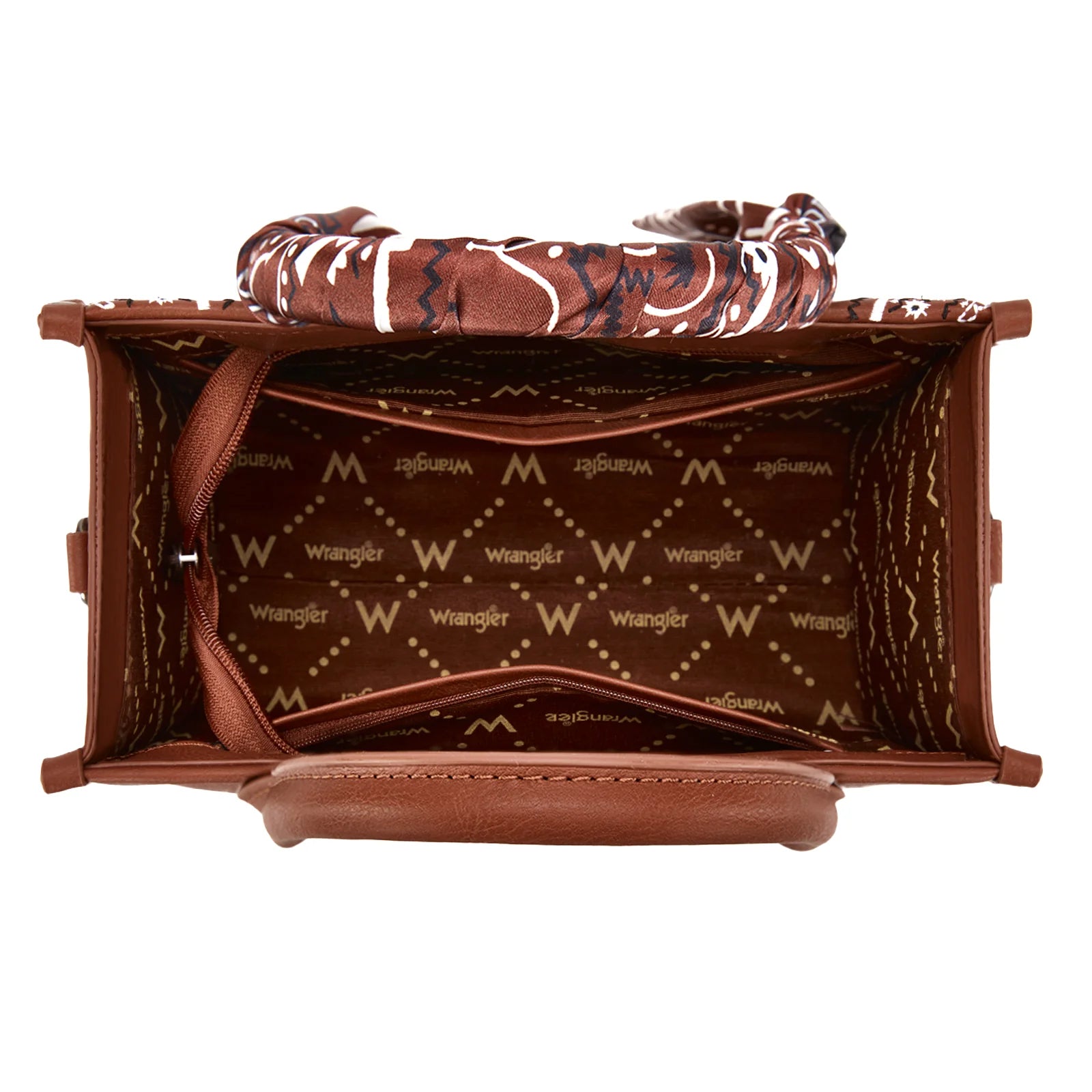 Wrangler Bandana Paisley Print Tote/Crossbody -Brown
